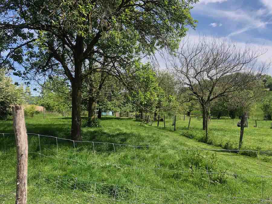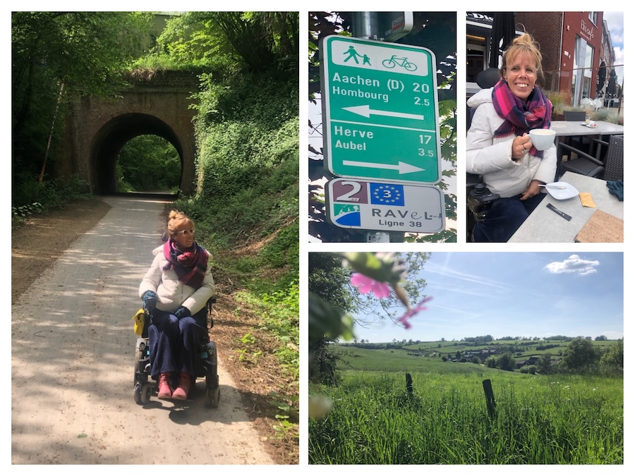 De Voerstreek heeft mij positief verrast; prachtig heuvellandschap met Franse sferen, al was het alleen al door de Franse taal waar je in wordt aangesproken. Direct achter de boerderij loopt route 38 van de ‘Réseau Autonome des Voies Lentes’ (RAVeL), beschreven als ‘een comfortabel en veilig netwerk voor de trage weggebruiker‘. Deze groene wegen zijn aangelegd op jaagpaden en oude spoorlijnen en je ziet er geen auto. Alleen de eerste 30 meter achter de boerderij is het even lastig om op het pad te komen, door de keien en hobbelige ondergrond (dat zie je op dit filmpje!). Daarna is het heerlijk wandelen richting Aubel, let op want het is vals plat, dat merk je vooral op de terugweg! Sowieso, kan het behoorlijk heuvelachtig zijn op de verschillende wandel- en fietsroutes.