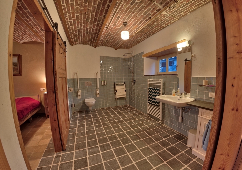 De badkamer is ook lekker groot. Bij het toilet (hoogte 47 cm) aan beide zijden een opklapbare beugel. De douche heeft een regendouche en handdouche en er hangt een opklapbare douchestoel (hoogte 49) met armleuningen aan de wand. De wastafel is onderrijdbaar en heeft een handige een-hendel-kraan. Op verzoek zijn extra hulpmiddelen aanwezig, zoals een papegaai, passieve tillift, verrijdbare douchestoel en rollator. Vraag bij Hans en Tytsje eventueel om de uitgebreide toegankelijkheidsinformatie.