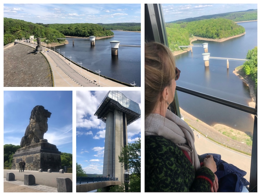 Een andere dag bezochten wij de indrukwekkende stuwdam van Gileppe. Deze stuwdam is inmiddels 150 jaar oud en nog steeds in gebruik. Je kan er overheen lopen en je kan ook met de lift de ruim 77 meter hoge panoramatoren op. Hier kijk je prachtig over het meer, de majestueuze leeuw van Félix-Antoine Bouré en het omliggende bosgebied. Het restaurant boven is stom genoeg niet rolstoeltoegankelijk door een paar laatste traptreden. Beneden, naast een klimbos, is een eenvoudig restaurant met snacks en ijs!