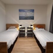 Gerhard noemt zijn villa IJsselmeerstraat 190, je boekt het via de link ‘Boek nu’ op zijn website www.ijsselmeerstraat190.nl. Let op, op de site van Europarcs staan ook twee MIVA Watervilla’s maar volgens Gerhard zijn dat ‘nepperds’. Belangrijkste verschil is het toilet, deze is bij deze woningen niet in de badkamer maar apart en te klein om met de rolstoel bij het toilet te komen. Ook is de infrarood douche boven en is er maar 1 hoog-laagbed.