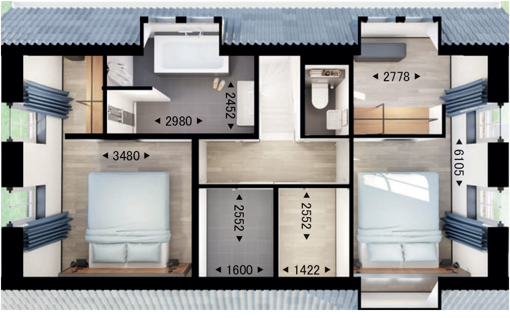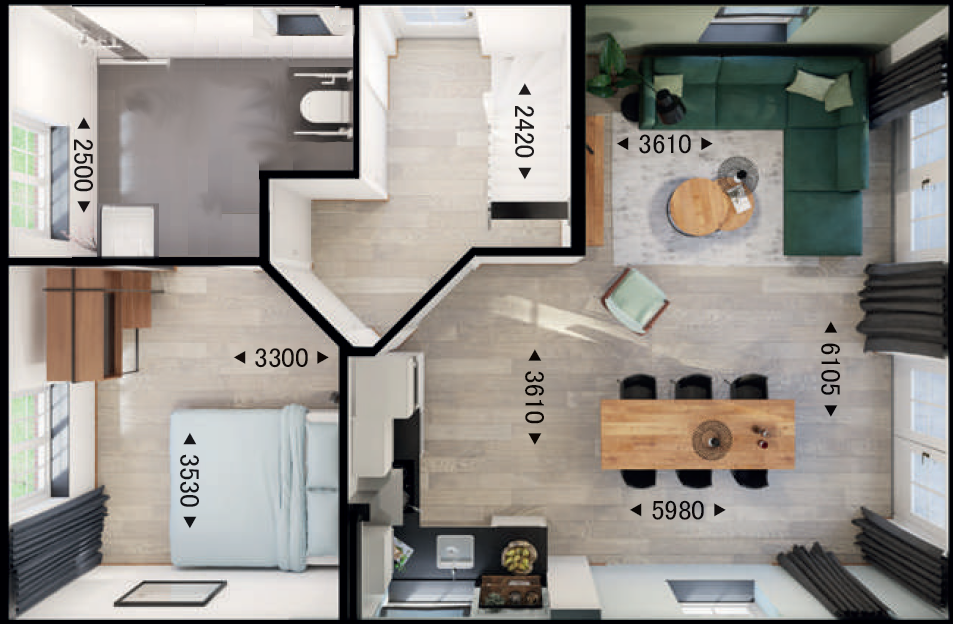 In de ruime woonkamer, met grote zespersoons eettafel heb je uitzicht over de tuin en het water met rondom vakantiehuisjes. Er staat ook een grote, gezellige hoekbank met tv-meubel. Via de openslaande kom je direct op het overdekte terras of rijd je over een hellingbaan door naar de grote steiger aan het water. Een heerlijk plekje, maar wanneer alle huisjes rondom het water bezet zijn is er weinig privacy. In de woonkamer is ook de onderrijdbare keuken. Vanuit de hal bereik je de slaapkamer met aangrenzend een rolstoeltoegankelijke badkamer met toilet. Lekker luxe is de sunshower (infrarood paneel). Boven zijn nog twee lichte slaapkamers met in elke kamer twee boxspringbedden, een tweede badkamer met douche en ligbad en separaat toilet.