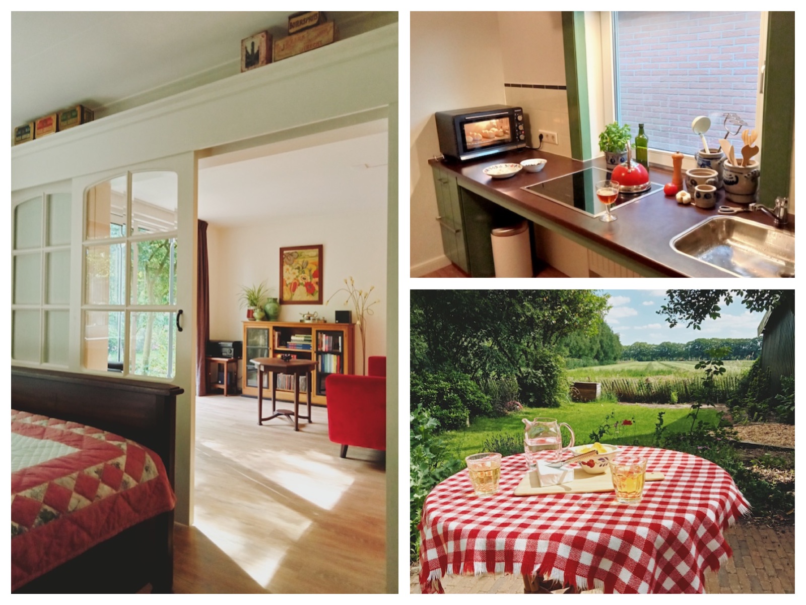 Dit huisje doet zijn naam eer aan: De kamer-en-suite woon- en slaapkamer zijn met liefde en aandacht ingericht en dat zie je! Met meubels en snuisterijen uit verschillende tijden, zonder dat het een allegaartje wordt. Maar ook een hooglaag bed verstopt in een antiek houten ledikant en de prachtige tegeltjes in Amsterdamse stijl in een inloopdouche zonder drempels. Eigenaars Frans en Margreet wonen in het naastgelegen huis en runnen ook nog een curiosawinkeltje ‘De Vindplaats’. Snuffel hier tijdens je verblijf rustig rond en check dan zeker ook de collectie lp’s! Je mag ze afspelen op de platenspeler in het appartement! Een TV is er niet, er staan boeken en (bord)spellen… of je geniet van de heerlijke tuin en wat voorbijkomt aan eekhoorntjes, konijnen, vogels, vlinders. De houtkachel buiten zorgt voor plezierige, lange avonden.