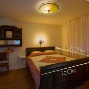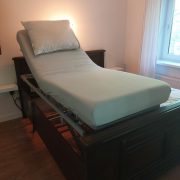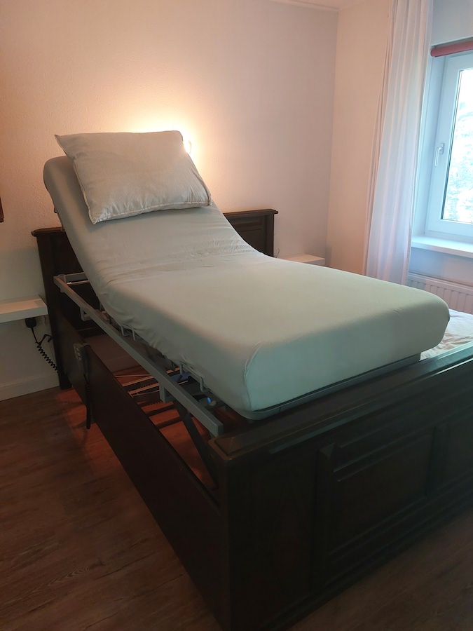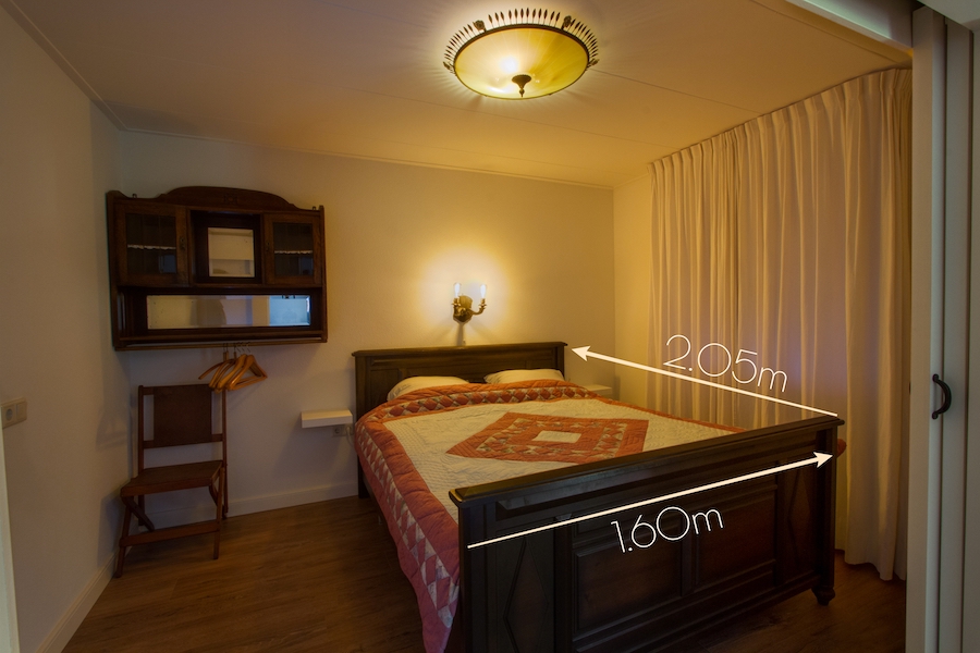 Frans en Margreet zijn beiden van oorsprong ergotherapeut en vonden het dus niet meer dan logisch het appartement toegankelijk te maken voor rolstoelers en iedereen die slecht ter been is. Niet vaak vond ik dan ook zulke goede en uitgebreide informatie kant en klaar op de website! Woonkamer, slaapkamer, keuken en badkamer zijn op de begane grond. De slaapkamer is met schuifdeuren verbonden aan de woonkamer. In de slaapkamer is aan één kant van het tweepersoonsbed (160×200 cm) ruimte voor een rolstoel, aan die zijde staat de hoog-laag bedcarier. Laagste stand van het bed is 60 cm en de maximale hoogte 94 cm.