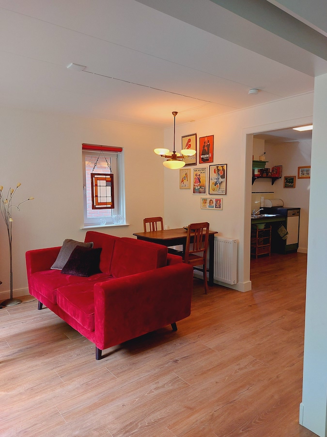 Dit huisje doet zijn naam eer aan: De kamer-en-suite woon- en slaapkamer zijn met liefde en aandacht ingericht en dat zie je! Met meubels en snuisterijen uit verschillende tijden, zonder dat het een allegaartje wordt. Maar ook een hooglaag bed verstopt in een antiek houten ledikant en de prachtige tegeltjes in Amsterdamse stijl in een inloopdouche zonder drempels. Eigenaars Frans en Margreet wonen in het naastgelegen huis en runnen ook nog een curiosawinkeltje ‘De Vindplaats’. Snuffel hier tijdens je verblijf rustig rond en check dan zeker ook de collectie lp’s! Je mag ze afspelen op de platenspeler in het appartement! Een TV is er niet, er staan boeken en (bord)spellen… of je geniet van de heerlijke tuin en wat voorbijkomt aan eekhoorntjes, konijnen, vogels, vlinders. De houtkachel buiten zorgt voor plezierige, lange avonden.